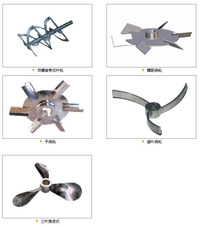 攪拌漿葉其形式和質(zhì)量直接影響反應(yīng)的質(zhì)量和效果,配套生產(chǎn)推進式、槳式、渦輪式、錨式、螺帶螺桿式五大系列攪拌器,基本能滿足石油、化工、冶金、制藥、染料、食品等行業(yè)各種攪拌工藝要求。并可根據(jù)實際需要將兩種或兩種以上的攪拌器組合成復(fù)式攪拌器會達到更好的攪拌效果。