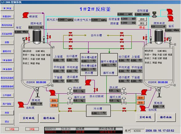 計算機遠程控制系統(tǒng)可對反應(yīng)釜的工作溫度,工作壓力,攪拌轉(zhuǎn)速,流量,液位,攪拌力矩等參數(shù)在計算機上進行在線監(jiān)控并可顯示各種數(shù)據(jù)及曲線并可通過鼠標(biāo)器直接控制儀表的輸出,除了對整個系統(tǒng)實時監(jiān)控外,還可打印趨勢、歷史記錄曲線,為分析工藝過程,調(diào)整修改工藝參數(shù)提供依據(jù)。有效地減輕了科技人員的勞動強度,改善實驗室操作環(huán)境,使試驗水平得到提高。